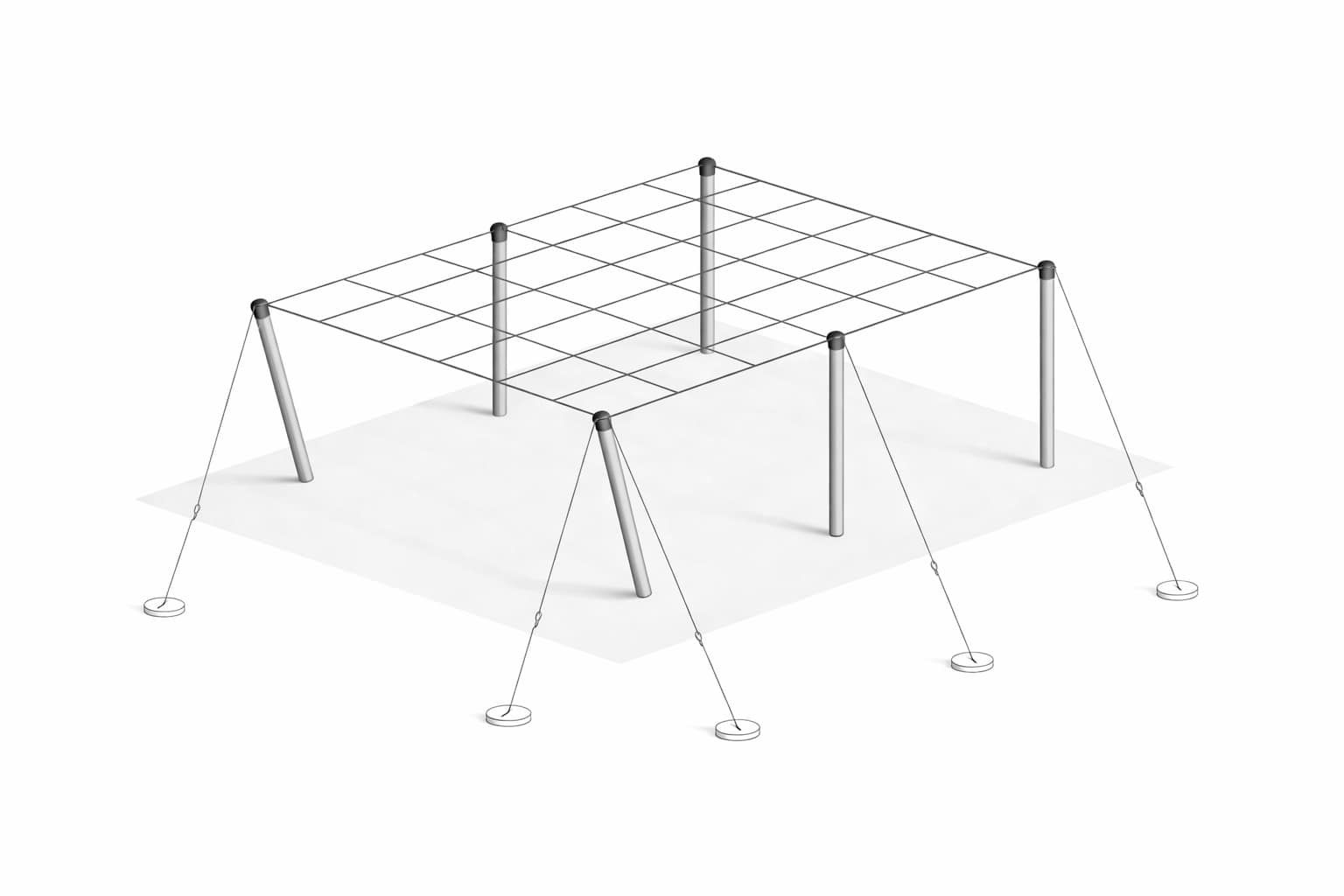 Կիվիի համար նախատեսված pergola կառուցվածքը պատրաստվում է նախալարված բետոնե սյուներից և տաք ցինկապատ մետաղական կոնսոլներից (թևիկներ)։ Քանի որ կիվիի արտադրական բեռնվածությունը բավական բարձր է, խորհուրդ է տրվում օգտագործել․ միջանկյալ սյուներ՝ 8 × 8.5 սմ հատույթով և 12 մետաղալարային ամրացմամբ, գլխավոր (ծայրային) սյուներ՝ 10 × 12 սմ հատույթով և 18 մետաղալարային ամրացմամբ։ Շարքի երկայնքով սյուների միջև հեռավորությունը սովորաբար չի գերազանցում 4 մետրը։ Կիվիի pergola համակարգերը հաճախ համալրվում են կարկտապաշտպան կամ անձրևապաշտպան ծածկով։ Բոլոր սյուները համալրված են տաք ցինկապատ կոնսոլներով, որոնք պետք է ընտրվեն ըստ աճեցվող կիվիի սորտի։ Մասնավորապես՝ կանաչ կիվիի համար օգտագործվում են 200 սմ լայնությամբ կոնսոլներ, որոնց ծայրերը թեքված են 70–90° անկյան տակ։ Այս կոնսոլները ունեն սովորաբար 4–6 մետաղալարի ամրակ ։