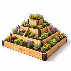 Բազմաստիճան փայտե բարձրացված ծաղկաման, որը թույլ է տալիս արդյունավետ կազմակերպել բույսերի աճեցումը փոքր տարածքում։ Իդեալական լուծում է այգիների և բակերի համար՝ համադրելով դիզայնն ու գործնականությունը։