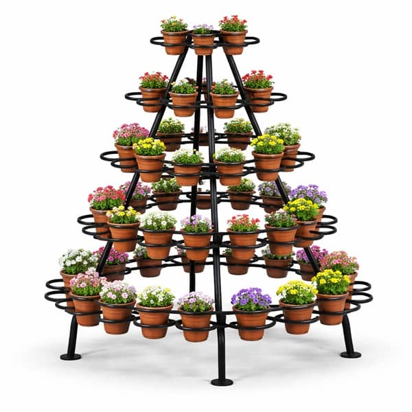 Բազմաստիճան մետաղական ծաղկամանների ստենդ, նախատեսված մեծ քանակությամբ ծաղիկների կոմպակտ և գեղեցիկ դասավորման համար։ Իդեալական է այգիների, պատշգամբների և կոմերցիոն տարածքների ձևավորման համար։