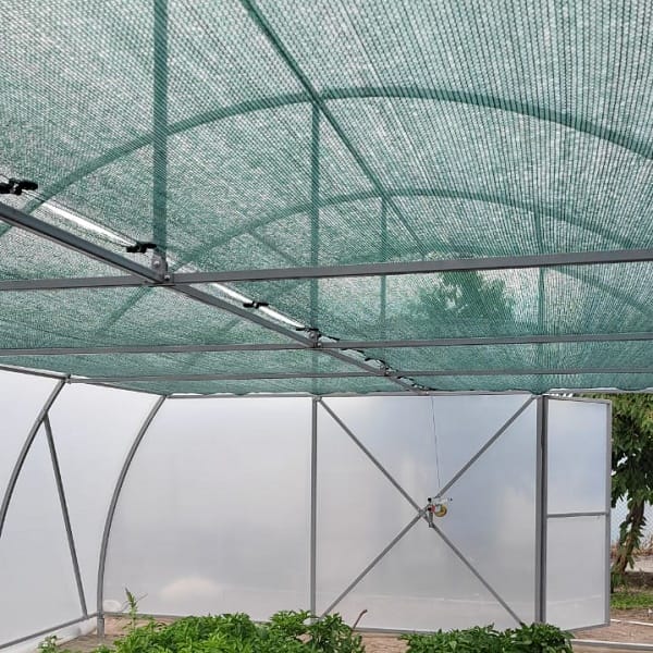 Արտաքին ծածկույթը՝ բջջային պոլիկարբոնատ 6 մմ հաստությամբ , որը չի խոչընդոտում արևի լույսի ներթափանցումը ջերմատուն ։